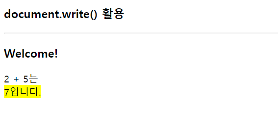document.write('2 + 5는 <br>');