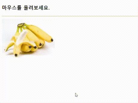 - 이미지에 마우스를 올리면 바나나로, 내리면 다시 사과로 바뀐다.