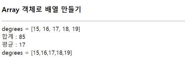 document.write('평균 : '+sum/degrees.length+'<br>');