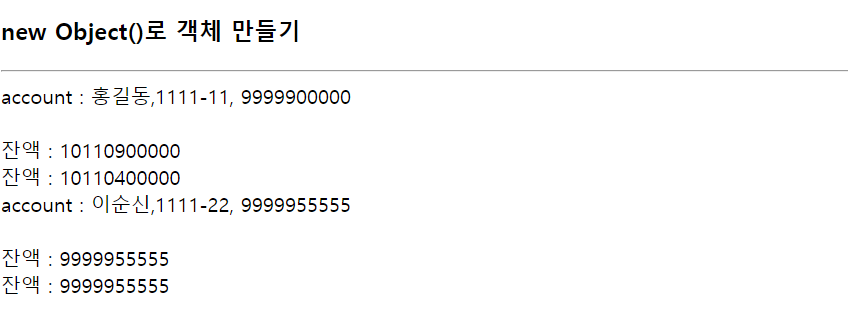 document.write('잔액 : '+account.inquiry()+'<br><br>');
