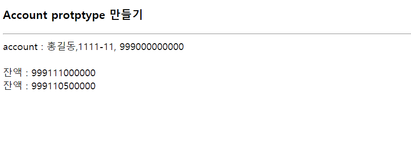 document.write('잔액 : '+account2.inquiry()+'<br>');
